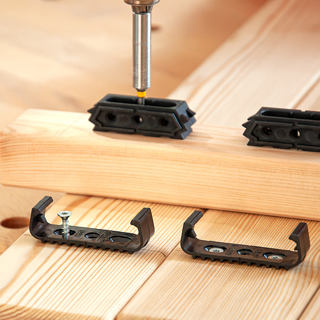 Ideal für die verdeckte Montage von Terrassendielen im Zick-Zack Terrassensystem.
